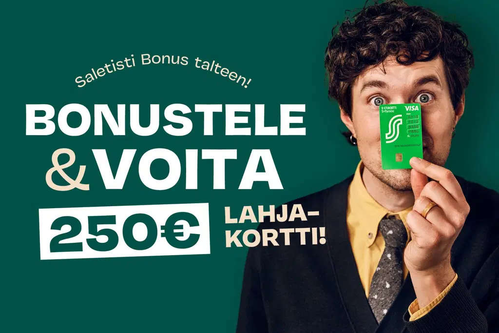 Nappaa Bonus talteen kaikista ostoksista SSO:n Saleissa ja osallistut samalla 250 € lahjakortin arvontaan!Bonustelu on nyt saletisti vieläkin mukavampaa puuhaa, sillä arvomme maaliskuussa 1.-31.3.2026 SSO:n Sale-myymälöissä bonustelleiden Suur-Seudun Osuuskaupan asiakasomistajien kesken neljä 250 euron S-ryhmän lahjakorttia! Kampanjassa yksi bonusostotapahtuma = 1 arpa, eli mitä enemmän bonustelet, sitä suuremmat ovat mahdollisuutesi voittaa.Ja bonusteluhan onnistuu kätevästi...📲 S-mobiilista löytyvällä S-Etukortin viivakoodilla